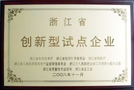 浙江省創(chuàng)新型試點(diǎn)企業(yè)牌匾